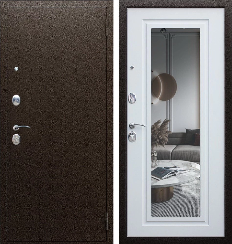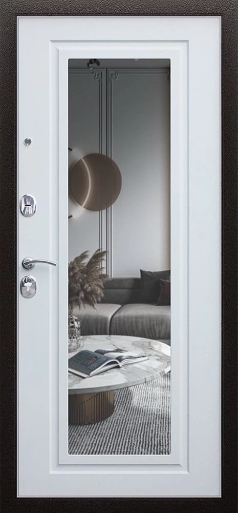 Надежная входная Дверь Комфорт с зеркалом премиум класса по цене 31 580 руб. Большая толщина стали защитит от проникновения в ваш дом, квартиру или коттедж. Используется очень качественная фурнитура: замки, цилиндры, ручки, защелки. Покрытие и отделка двери изготовлено под внимательным контролем производителя. Дверь имеет долгий срок службы и гарантию.